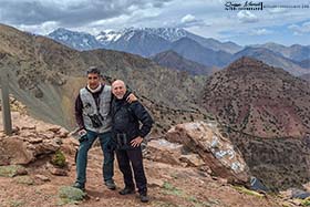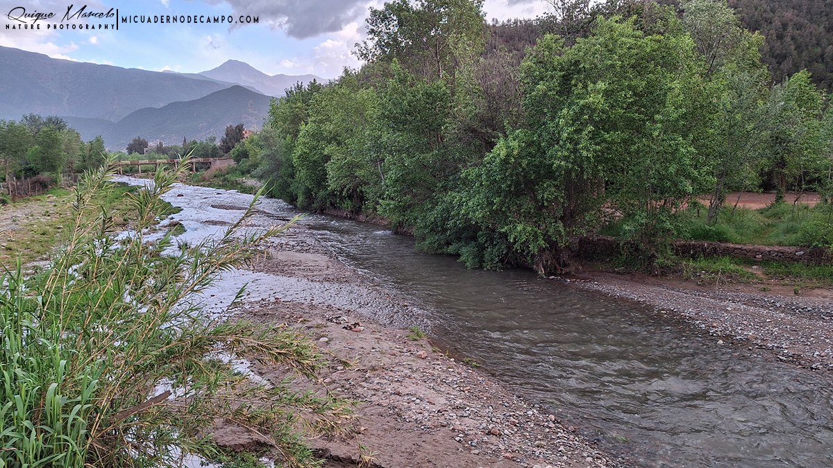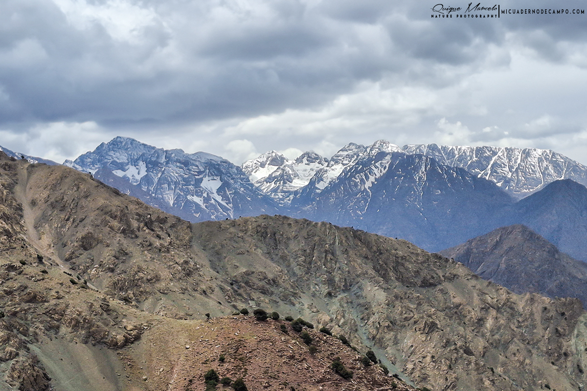 El día comienza temprano, con el despertador sonando a las 5:00 h. Tras asearnos y desayunar rápidamente en la habitación, partimos a las 5:50 h. rumbo a Oukaimeden, una estación de esquí situada a más de 2.600 metros de altitud que, fuera de temporada, se convierte en un enclave ornitológico de primer nivel, además de ser el lugar donde habita el Toubkal, la montaña más alta del norte de África, con 4.167 m. de altura. A nuestra llegada, el sol comienza a despuntar y el aire es frío. La primera parada es en la laguna de Oukaimeden donde observamos una Focha común (Fulica atra) nadando con calma. Comenzamos a ascender a pie por la ladera y enseguida aparecen las primeras especies: una Collalba negra (Oenanthe leucura), seguida de varios Gorriones chillones (Petronia petronia) entre las construcciones de piedra. Más arriba, detectamos las dos chovas características del lugar: la Chova piquigualda (Pyrrhocorax graculus) y la Chova piquirroja (Pyrrhocorax pyrrhocorax), que se dejan ver claramente en vuelo y alguna de las piquigualdas posadas sobre las construcciónes. Poco después, vemos fugazmente a un Colirrojo diademado (Phoenicurus moussieri), aunque desaparece rápido. En la misma roca aparece un Roquero solitario (Monticola solitarius), seguido de un Colirrojo tizón (Phoenicurus ochruros). Con los prismáticos localizamos al gran objetivo del día, un grupo de Camachuelos alirrojos (Rhodopechys sanguineus) se alimentan entre las piedras y nos regalan más de una hora de observación. De regreso hacia el coche, descubrimos a la otra estrella, una pareja confiada de Alondra cornuda (Eremophila alpestris) que completa un bloque excelente de especies alpinas. Seguimos carretera arriba hasta la estación principal del teleférico, donde observamos una pareja de Collalba del Atlas (Oenanthe seebohmi), además de Zorzal charlo (Turdus viscivorus), Pinzón magrebí (Fringilla spodiogenys) y otros comunes de la zona. En ese momento, un chico inglés se detiene en su coche y nos ofrece enseñarnos un Cárabo del Magreb (Strix mauritanica). Le seguimos y, efectivamente, encontramos al impresionante búho posado entre unos cipreses. Un momento inolvidable. También en los alrededores se encontraba un grupo familiar de Ardillas terrestres de Berbería (Atlantoxerus getulus), especie endémica del Atlas. Ya en el poblado de adobe de Oukaimeden, insistimos en buscar nuevamente al Colirrojo diademado (Phoenicurus moussieri), que esta vez se deja ver bien y fotografiar. También repetimos con Roquero solitario (Monticola solitarius), Alondra cornuda (Eremophila alpestris) y añadimos una Collalba gris (Oenanthe oenanthe) al cierre. Para terminar la jornada, decidimos subir en coche hasta lo más alto de la estación de esquí, donde se encuentra un mirador espectacular. Desde allí, las vistas son simplemente sobrecogedoras. Frente a nosotros se alza majestuoso el pico Oukaimeden, que da nombre a la estación, con su perfil escarpado recortándose contra el cielo. Pero aún más impresionante es la panorámica del Toubkal, el techo del norte de África, que con sus 4.167 metros de altura domina todo el paisaje. Es un momento de pausa y contemplación, una forma perfecta de cerrar un día intenso de montaña, aves y naturaleza. Nos quedamos unos minutos en silencio, absorbiendo la inmensidad del entorno antes de iniciar el viaje de vuelta a nuestro alojamiento. Por la tarde, en el valle de Ourika, buscamos al Zarcero bereber (Iduna opaca) y al Pito bereber (Picus vaillantii), sin éxito. Vemos, eso sí, Herrerillo canario (Cyanistes teneriffae), además de Ruiseñor común (Luscinia megarhyncos), Bulbul naranjero (Pycnonotus barbatus) y Lavandera cascadeña (Motacilla cinerea). Pero la jornada se ve abruptamente interrumpida por una tormenta torrencial. La lluvia nos obliga a salir corriendo del campo y detener el coche por lo impracticable de la carretera. Afortunadamente conseguimos cruzar el puente del río y llegar al alojamiento sin problemas. Terminamos el día con una ducha caliente y una cena con un tajine de pollo, satisfechos por las observaciones logradas en un entorno tan espectacular como el Alto Atlas. |