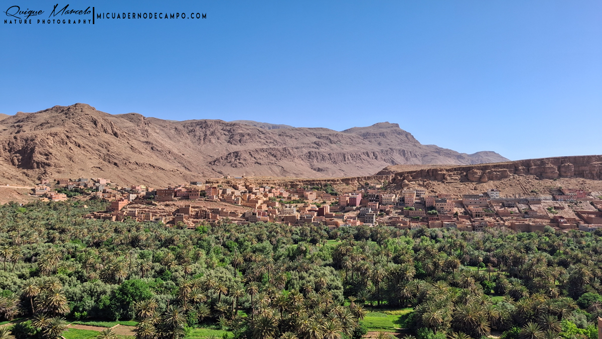 Arrancamos el día bien temprano, con el despertador sonando a las 5:30. Una hora más tarde, dejamos atrás el Jad Auberge y el verde Valle de Ourika. Hoy comienza nuestra transición hacia el sureste, rumbo a Boumalne Dades, con varias paradas estratégicas para seguir sumando especies clave del viaje. La primera parada es el bosque de Toufliht, un pinar de montaña con ambiente fresco y silencioso. Aquí conseguimos ver al siempre activo Herrerillo canario (Cyanistes teneriffae) y a varios Reyezuelos listados (Regulus ignicapilla) entre unos arbustos buscando comida. Un inicio tranquilo que nos sirve para desperezarnos y ponernos en modo alerta para lo que está por venir. Más adelante, desde la carretera, descubrimos un pueblecito pequeño llamado Argnanou, un sitio no señalado en eBird pero que intuimos como prometedor. Y no defrauda. Aquí conseguimos por fin uno de los objetivos pendientes, el Zarcero bereber (Iduna opaca), además de un precioso Escribano sahariano (Emberiza sahari), varios Bulbules naranjeros (Pycnonotus barbatus) y Pinzones magrebíes (Fringilla spodiogenys). Todo ello, en un entorno inesperado y mágico. Nuestra siguiente parada es breve, en un pequeño bosquete junto a la N-9, donde detectamos un Pico picapinos (Dendrocopos major) y un Zorzal charlo (Turdus viscivorus), que se deja ver en el suelo con ceba en el pico, seguramente para sus pollos que no deben andar lejos. Pero el momento más impactante del día ocurre en el pueblo de Aguelmouss. En apenas 20 minutos, conseguimos observar al escurridizo Pito bereber (Picus vaillantii), junto a un Papamoscas gris (Muscicapa striata) y un inquieto Colirrojo tizón (Phoenicurus ochruros). Justo cuando pensábamos que nada podía mejorar, presenciamos una escena inolvidable: un Águila real (Aquila chrysaetos) lanza un ataque relámpago sobre una grajilla. Aunque no logra capturarla, la potencia del lance nos deja literalmente paralizados. Un espectáculo salvaje y fascinante. Ya en el tramo final del día, visitamos el embalse de Ouarzazate, donde el paisaje se vuelve más seco y abierto. Aquí, las aves propias de zonas áridas comienzan a hacerse presentes. Avistamos una Collalba desértica (Oenanthe deserti), también, Terrera sahariana (Ammomanes cinctura), otro Zarcero bereber (Iduna opaca), y un bonito Alzacola rojizo (Cercotrichas galactotes), aunque se encuentra algo lejos para la foto. Finalmente, llegamos sobre las 20:15 al Riad Dades Birds, nuestro alojamiento en Ifri, un pueblo cercano a Boumalne Dades, gestionado por la familia de Brahim Mezane. Con él hemos organizado dos salidas clave: la de mañana por Tagdilt Track y otra posterior en el desierto de Merzouga, el día 28. Cerramos este intenso y fructífero día con una cena reparadora, una ducha rápida y directos a la cama, soñando ya con las aves esteparias del sur. |